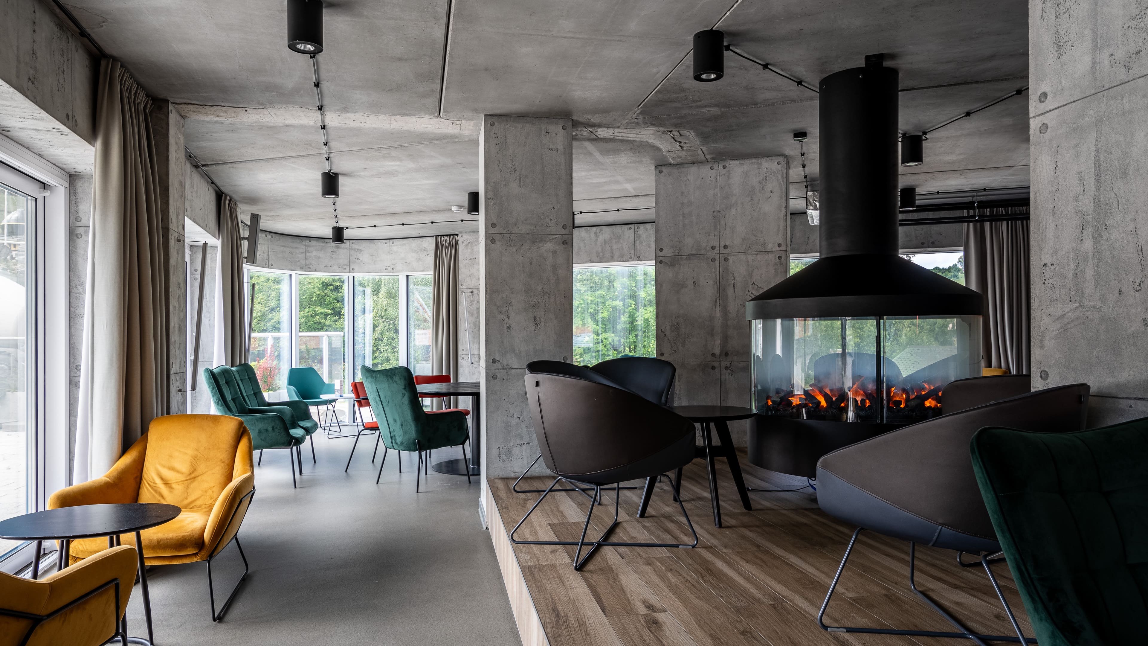Compared to other conference centers, the interiors here are distinguished by their extraordinary attention to aesthetics and good taste. You can choose different design variants, being sure that each room will provide unique visual impressions thanks to a skillful combination of modernity, small additions and the highlander spirit. Conference and VIP rooms have access to natural light with the option of dimming.